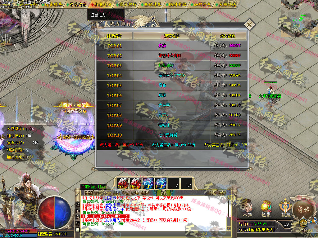 赠送800级,15转.印记地图解封*3个,赠送神技·吸星大法(全屏吸怪,冷却8秒),30%神力,100%爆率!